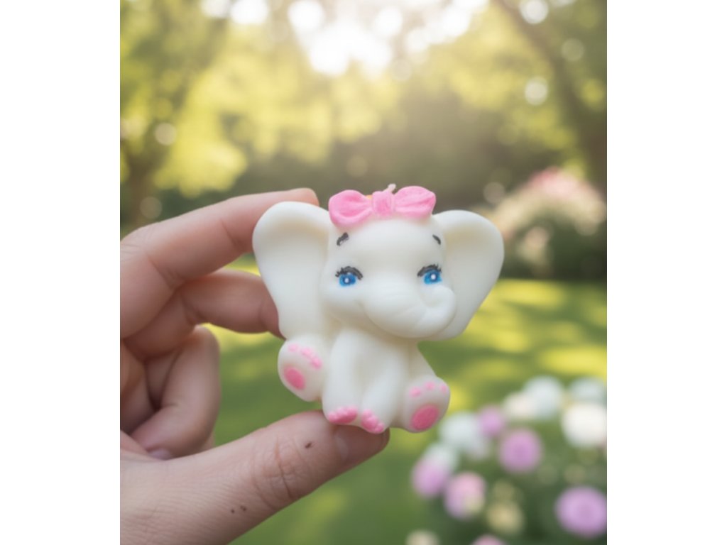 Tato ručně vyráběná svíčka ve tvaru slůněte je navržena pro ty, kteří milují něžné a propracované doplňky. Bílé tělo slůněte krásně kontrastuje s růžovými detaily, které mu dodávají na roztomilosti.