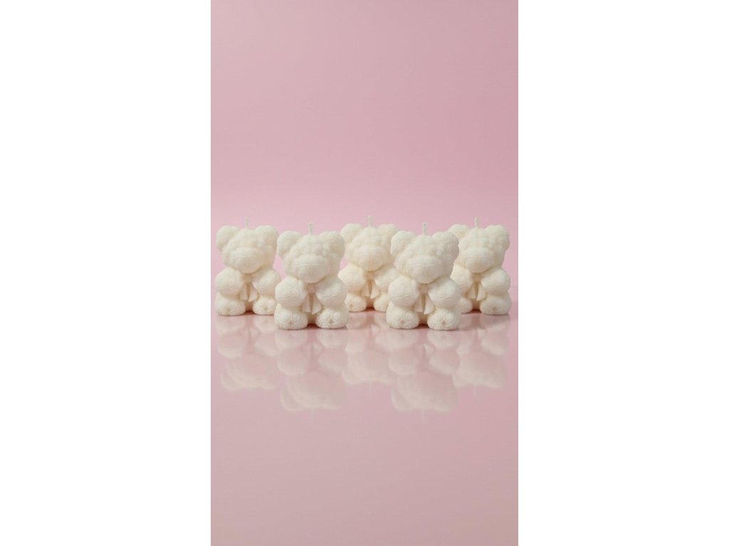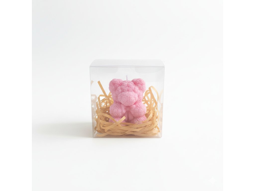 Každý medvídek je pečlivě odlit ze sójového vosku do podoby desítek drobných růží, což z něj dělá unikátní dekorativní kousek.